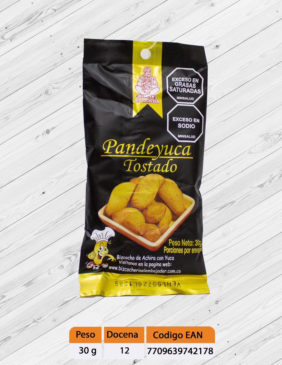 Bizcocho de Yuca. Producto elaborado a base de Cuajada fresca, almidón de Yuca; materias primas que proporcionan un producto con alto contenido proteico, muy sano, nutricional y funcional para nuestro organismo. Con un olor y sabor a lácteo, de color amarillo dorado, suave y muy crocante al paladar.